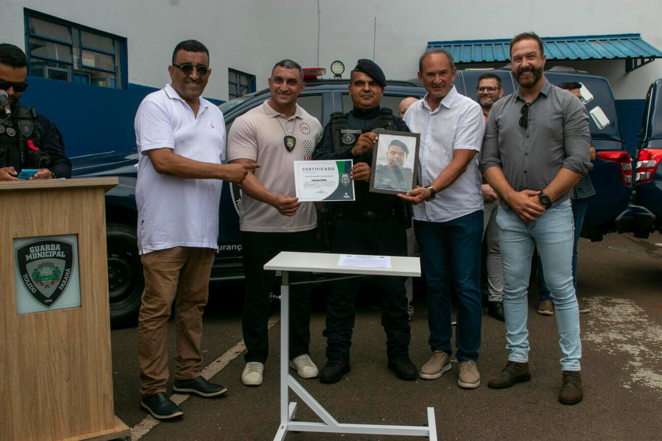 Homenageado – GM Balieiro, ingressou na Guarda Municipal em 1° de julho de 1994 e, segundo o Elogio Individual, elaborado pela equipe da corporação, em seus, quase, 32 anos na instituição construiu uma carreira sólida e respeitável, marcada pela constância, experiência e compromisso com a missão institucional. Formado em administração de cidades e pós graduado em administração pública e gerência de cidades, e conforme o documento, utiliza seus conhecimentos e habilidades no serviço operacional, onde atua atualmente. “Seus serviços são de extrema importância para a guarda e para o município, obtendo resultados expressivos na recuperação de veículos furtados, devolvendo os bens às famílias que haviam sido vítimas desse tipo de crime” cita o Elogio Individual. GM Balieiro, participou ativamente da retomada de 6 veículos nos últimos 50 dias, assim, recebendo a honraria e homenagens de policial municipal destaque do mês de janeiro.