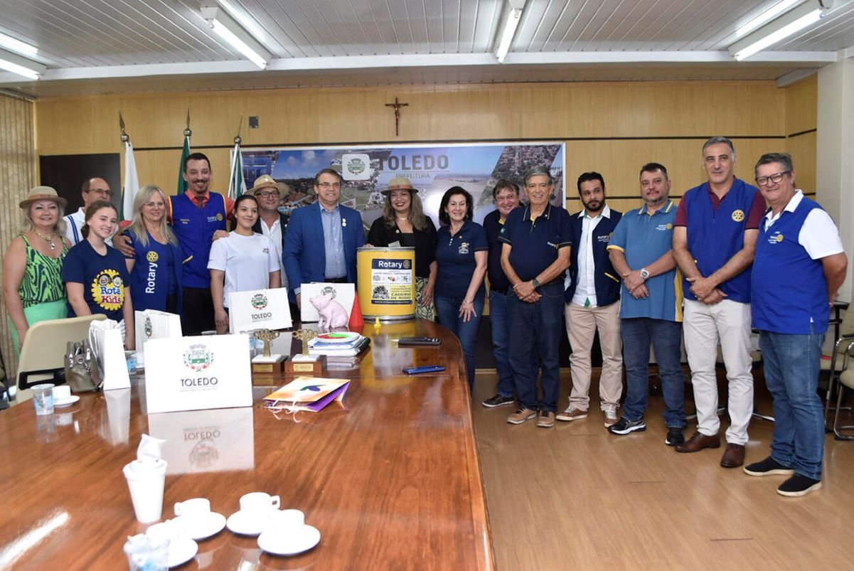 As políticas públicas focadas no cuidado às pessoas foram o tema central do encontro ocorrido na manhã desta terça-feira (24) entre o prefeito de Toledo, Beto Lunitti, e a governadora do Distrito 4640 do Rotary Club, Anna Cristine Gomes da Silva Cavalli. Ela estava na companhia de representantes das 11 unidades do clube de serviço (Rotary Club Toledo, Rotary Club Toledo Integração, Rotary Club Toledo Lago, Rotary Club Pioneiro, Rotary Club Centenário, Rotary Club Aliança, Rotaract Club Toledo, Rotaract Club de Toledo Integração, Interact Club de Toledo Integração, Rotakids de Toledo Integração e Associação de Senhoras Rotarianas [ASR]) instalados no município.