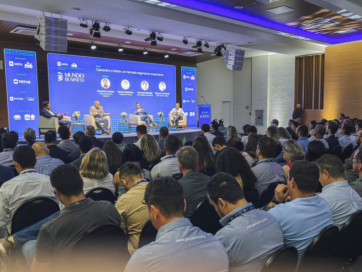 O prefeito de Toledo, Mario César Costenaro, participou, nesta terça-feira (30), do painel “Cascavel e o Oeste: um mercado regional em crescimento”, realizado na sede da Associação Comercial e Industrial de Cascavel (Acic) com o objetivo de debater o papel estratégico da região como motor de desenvolvimento econômico para o Paraná e o Brasil. O 2º Mundo Business Cascavel reuniu lideranças políticas e institucionais.