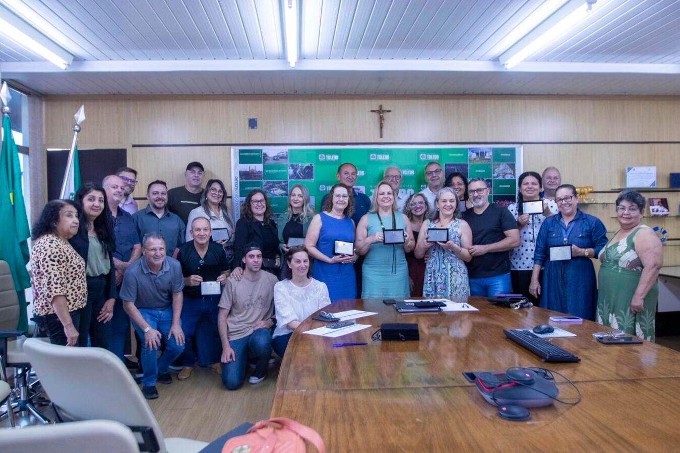 A manhã desta quinta-feira (2) foi marcada por um gesto de reconhecimento no Paço Municipal de Toledo. A Sala de Reuniões do Gabinete do Prefeito recebeu 13 dos 17 servidores públicos municipais que tiveram suas portarias de aposentadoria publicadas no Órgão Oficial do Município entre julho e agosto deste ano.