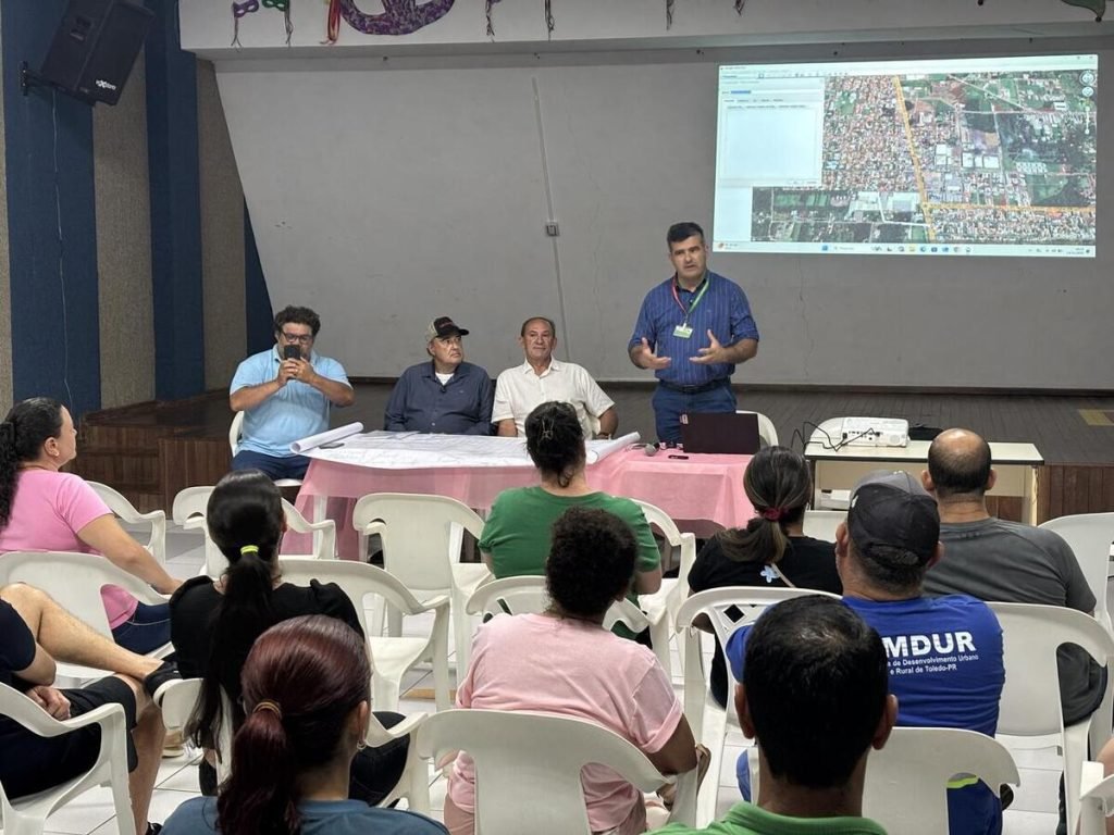 A Prefeitura de Toledo realizou uma reunião com moradores do Jardim Coopagro na noite dessa quinta-feira (13), no Centro da Juventude (CJU) do bairro, para esclarecer as ações já realizadas e as previstas para conter os frequentes alagamentos na região. As medidas foram apresentadas pelo secretário de Infraestrutura Rural e Urbana e de Serviços Públicos, Fábio Leal, e pelo superintendente da Empresa de Desenvolvimento Urbano e Rural de Toledo (Emdur), José Airton Cella. Também participaram o prefeito em exercício, Lucio De Marchi, e o vereador Genivaldo de Jesus.