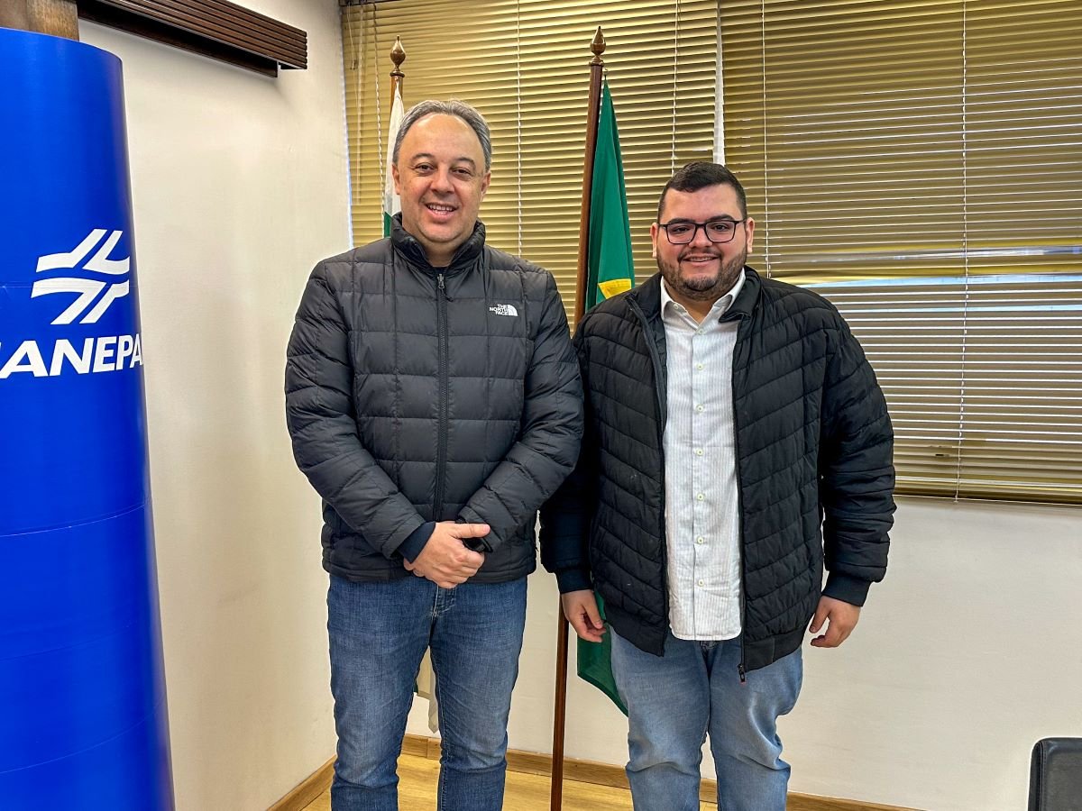 O presidente da Câmara Municipal de Toledo, vereador Gabriel Baierle, esteve em Curitiba em reunião com o diretor da Sanepar, Bihl Zanetti, para tratar de demandas relacionadas ao abastecimento de água no município.
