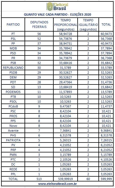 Ainda não foi determinado pelo TRE os tempos que cada coligação terá para as propagandas nos horários eleitorais, que entra no ar dia 09 próximo. Realizamos alguns cálculos das coligações de Toledo, e com embasamento no número de cadeiras de cada sigla, o maior tempo será da coligação “TRABALHO E INOVAÇÃO POR TOLEDO” e o segundo maior tempo será da “TOLEDO DO JEITO QUE A NOSSA GENTE QUER”.