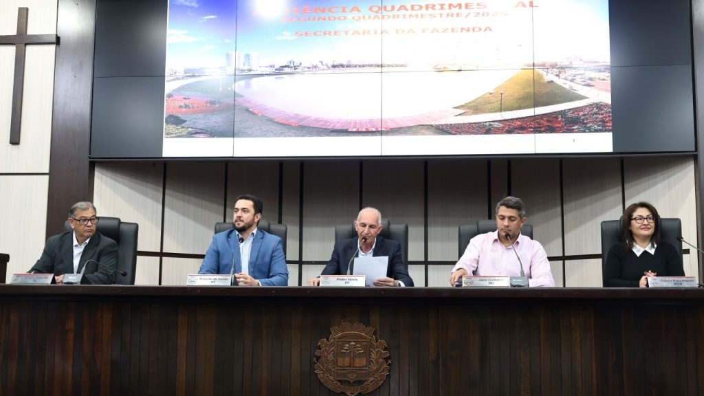 O vereador Pedro Varela (PP) presidiu a audiência, acompanhado do secretário Roberto de Souza (PT) e dos membros Jairo Cerbarro (DC), Katchi Nascimento (MDB) e Sergio Japonês (PL). Parlamentares que não integram a CFO também acompanharam a audiência. Balnei Rotta, secretário da Fazenda, comandou a apresentação dos números do segundo quadrimestre de 2025, ao lado da equipe técnica da pasta.