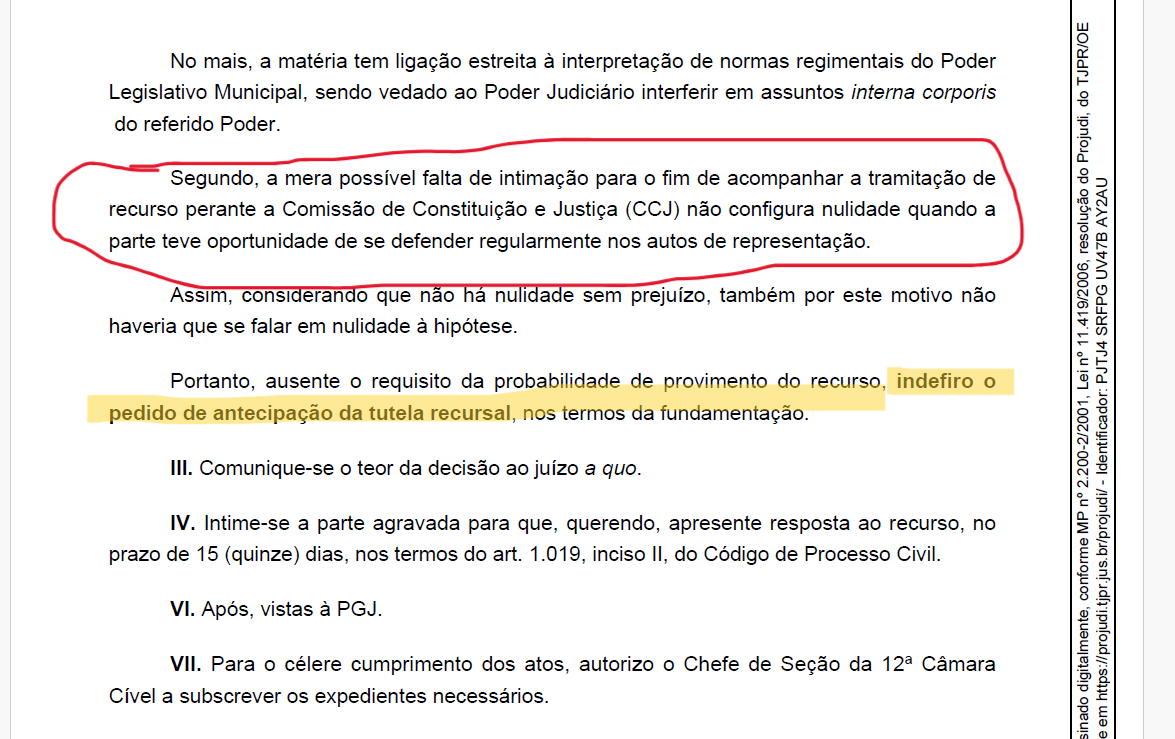 A Justiça lembrou ainda que o representado deve acompanhar os canais oficiais da Casa. Traduzindo: quem não lê o Diário Oficial, não pode reclamar depois.