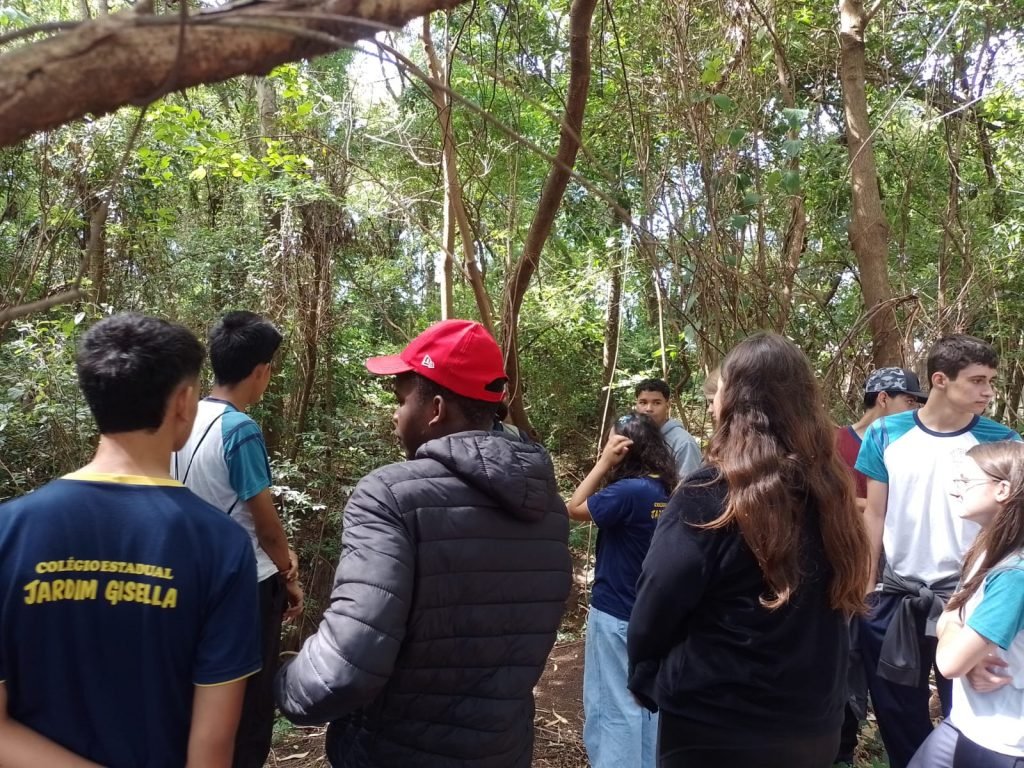 PROGRAMAÇÃO – A Trilha Guiada “O Marreco Começa Aqui”, liderada pela SMMA, monitora a qualidade da água com apoio de alunos da Universidade Federal do Paraná (UFPR). A bióloga da Secretaria do Meio Ambiente, Lilian Cardoso, explicou aos alunos do Colégio Estadual do Jardim Gisella o trabalho realizado, principalmente na nascente do Rio Marreco.
