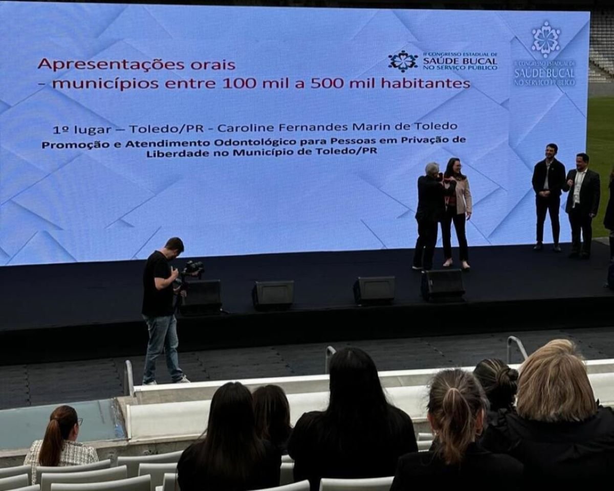 O trabalho que rendeu o prêmio de 1º lugar para Toledo é intitulado “Promoção e Atendimento Odontológico para Pessoas em Privação de Liberdade no Município de Toledo/PR”, apresentado por Caroline de Toledo. A apresentação destacou os desafios de inserir o serviço de saúde bucal no sistema prisional no município, e os resultados positivos a partir disso. É a primeira vez que Toledo recebe esse prêmio, que neste ano foi disputado entre 17 trabalhos selecionados de 77 inscritos de todo o Paraná.