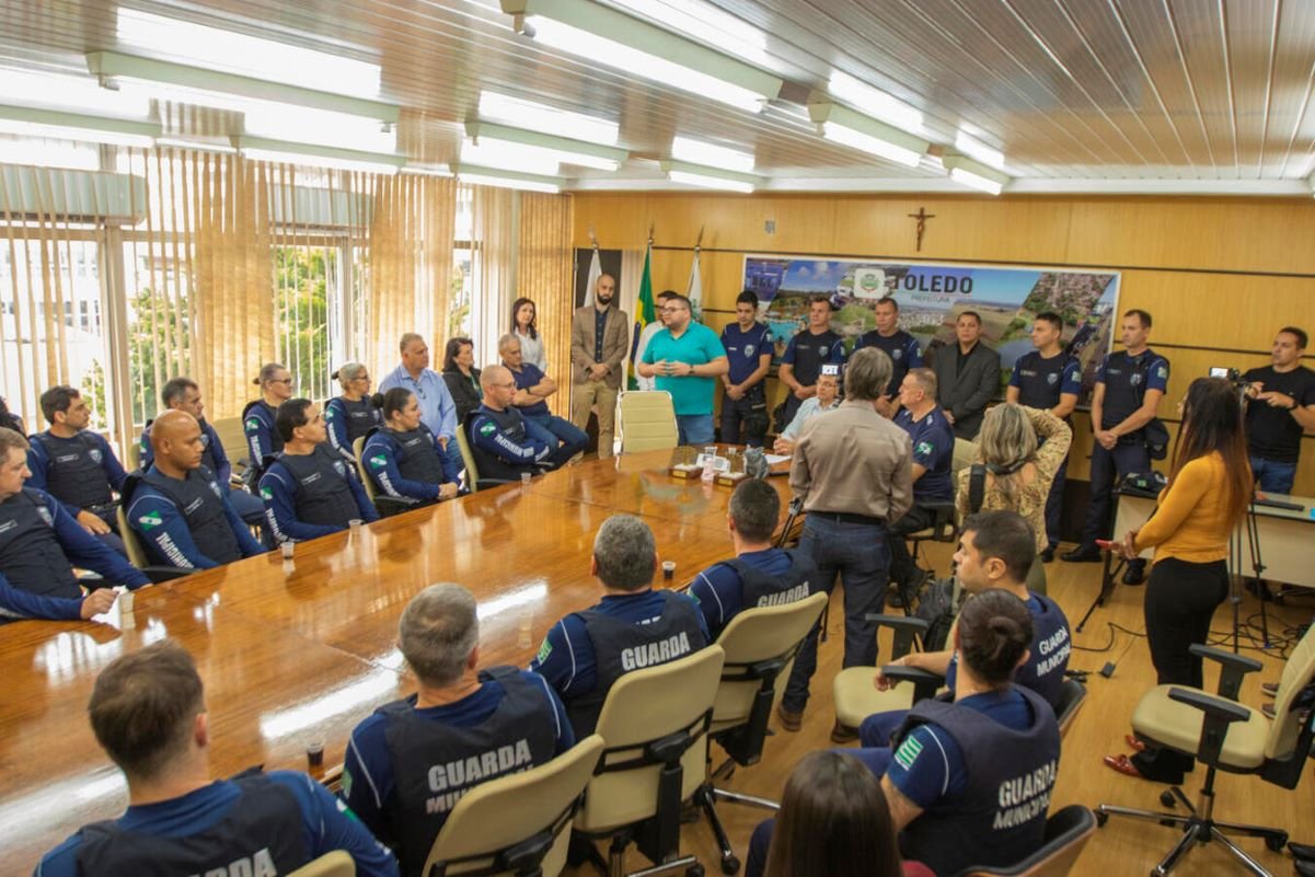 A fala do secretário de Segurança e Mobilidade Urbana e comandante da Guarda Municipal de Toledo, Christian Guilherme Goldoni, que é major da reserva remunerada da Polícia Militar, também foi neste sentido. “Alguns dos nossos agentes terão uma arma no coldre com a reta intenção de nunca precisar usá-la. Contudo, eles estão orientados a fazer uso dela como último recurso. Afinal, nossa corporação foi e, a partir de agora, é ainda mais o primeiro muro que protege a população da criminalidade”, comenta.