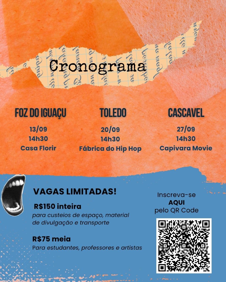 Será ofertada no dia 20 de setembro, às 14h30 no espaço cultural Associação de Hip Hop/Fábrica do Hip Hop, localizado na Rua São João, 6908 – próximo a rodoviária do Toledo. A atividade está sendo produzida pelo produtor cultural Guilherme Medeiros e não integra o projeto de oficinas da Fábrica do Hip Hop, apenas utilizará o espaço cultural para sua realização.