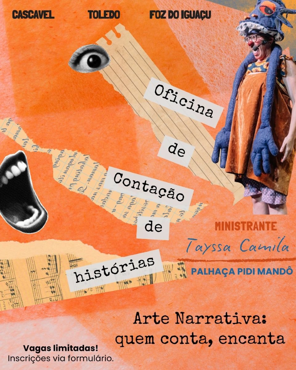 No mês de setembro Toledo recebe a oficina de contação de histórias, ministrada pela atriz e arteeducadora Tayssa Camila, palhaça Pidi Mando. A oficina tem como objetivo despertar um olhar sensível para formas criativas de narrar histórias, além de incentivar o uso de materiais reciclados para criação de elementos cênicos e sonoros e integra o projeto de extensão “Circuito de formação artística/cultural” promovido pelo CECA (Centro de Educação, Comunicação e Artes) da Unioeste de Cascavel.