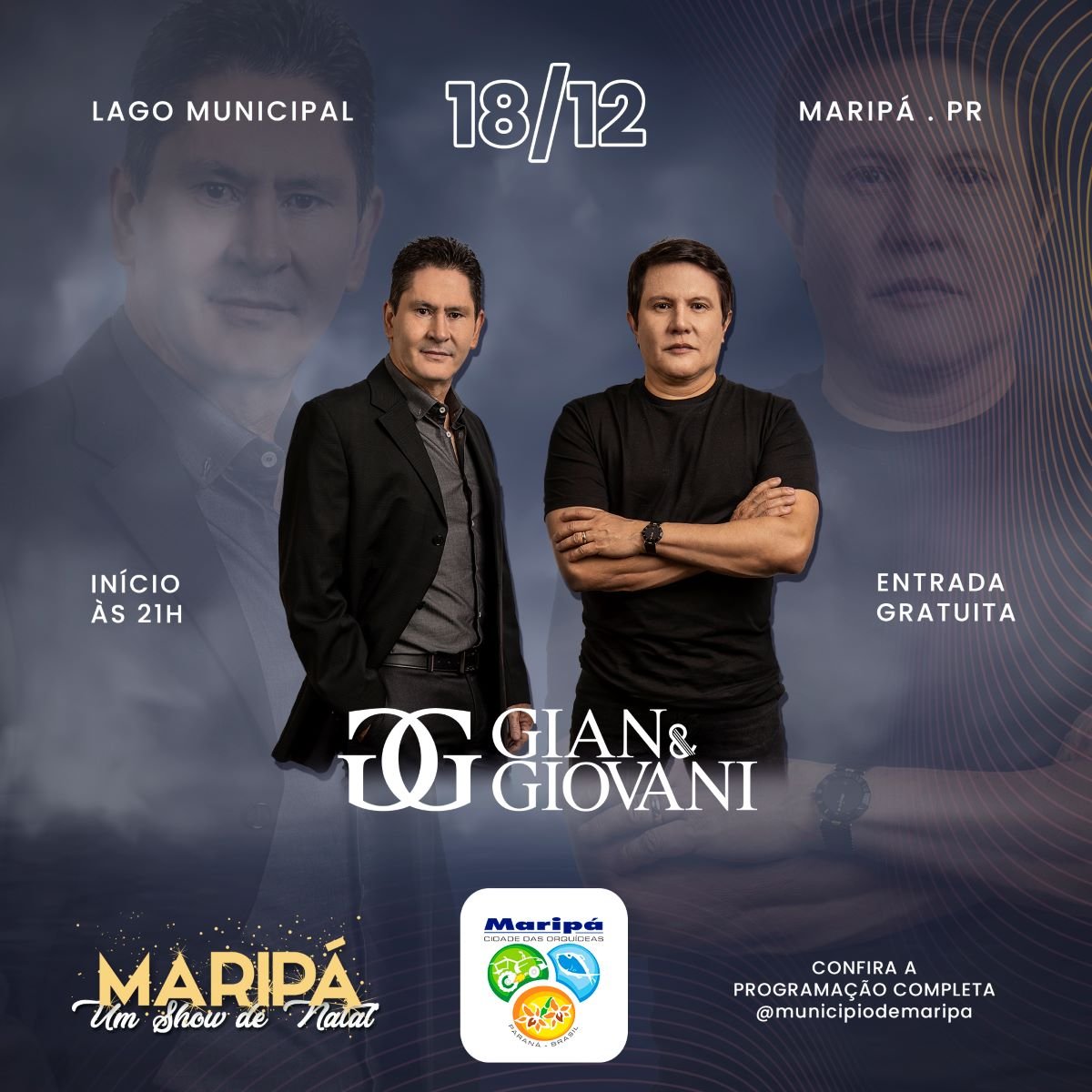 A programação de fim de ano em Maripá, Um Show de Natal conta com grandes atrações de 10 a 18 de dezembro. Serão nove noites de apresentações no Lago Municipal e nos distritos. Para encerrar o evento com chave de ouro, a dupla sertaneja Gian e Giovani subirá ao palco às 21h do dia 18, no Lago Municipal com entrada gratuita.