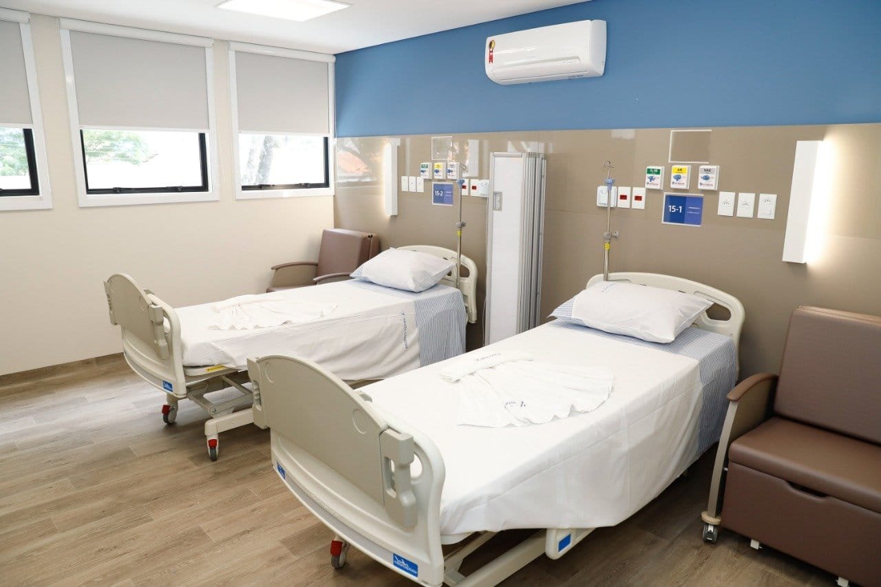 ESTRUTURA – A unidade conta com pronto-atendimento, ambulatório e 26 leitos humanizados. A decoração é voltada para a promoção da tranquilidade e acolhimento. A pintura é discreta e o ambiente recebe luz natural. Contempla, ainda, instalações para acompanhante e espaços de convivência. A nova ala foi construída no prédio onde funcionava o setor administrativo do hospital, no bairro Jardim das Américas.