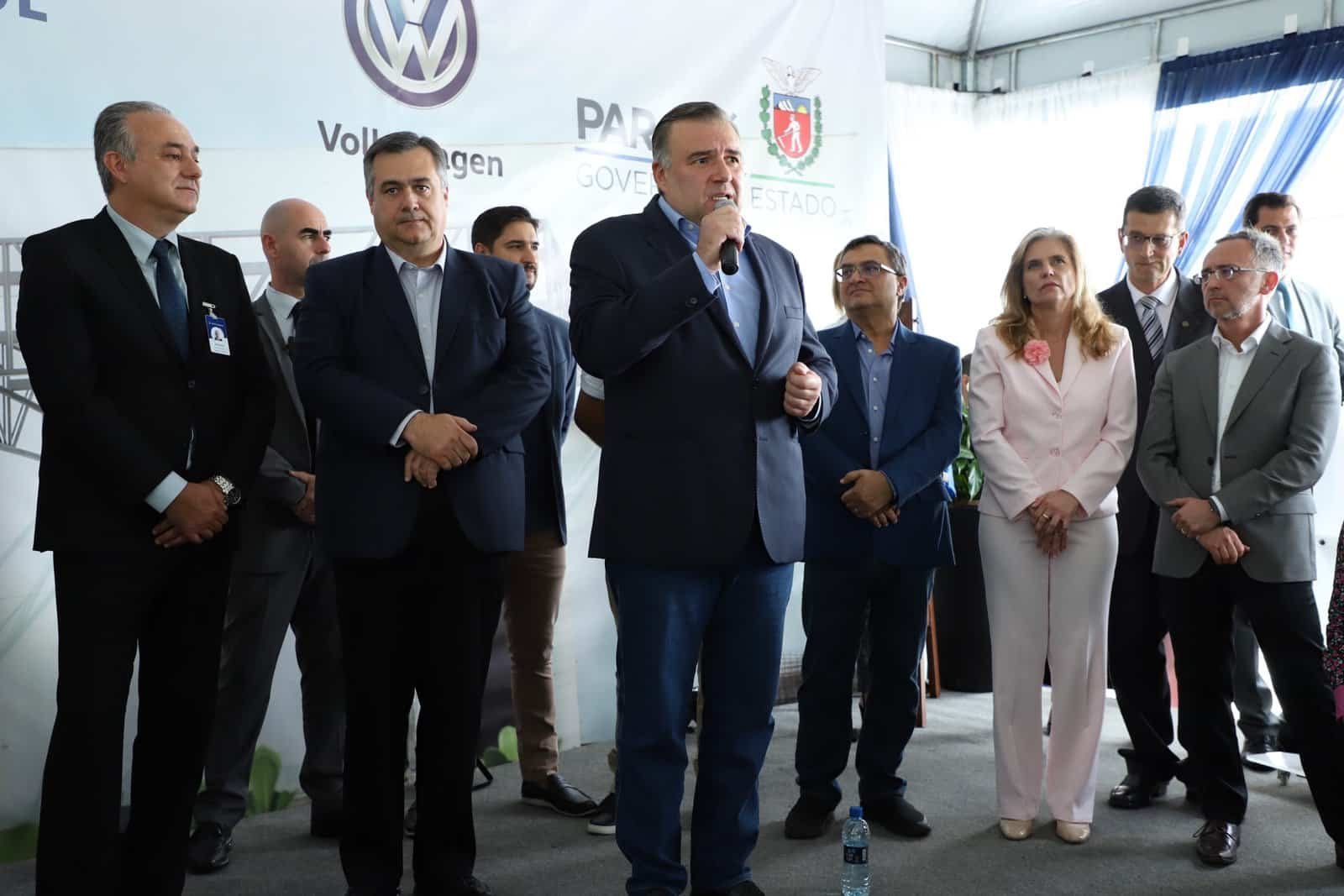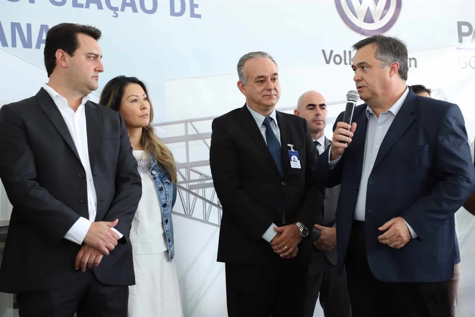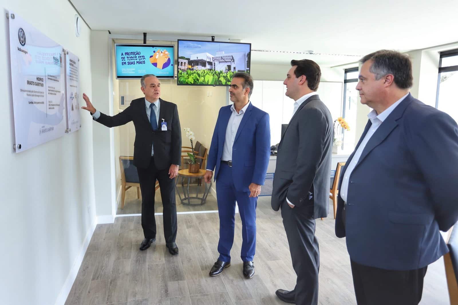 PRESENÇAS – Também participaram do evento a primeira-dama do Estado, Luciana Saito Massa; o prefeito de Curitiba, Rafael Greca; o senador Flávio Arns; o deputado estadual Michele Caputo Neto; o secretário da Justiça, Família e Trabalho, Ney Leprevost; o diretor-presidente da Invest Paraná, Eduardo Bekin; o vice-prefeito de Curitiba, Eduardo Pimentel; o presidente do Conselho de Administração da Liga Paranaense de Combate ao Câncer, Luiz Antonio Negrão Dias; e o prefeito de Paranaguá, Marcelo Roque, além de diretores e da Volkswagen do Brasil e profissionais do Hospital Erasto Gaertner.