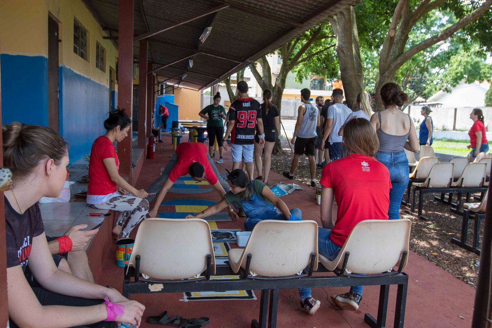 Os estudantes puderam retirar alguns materiais inutilizáveis que estavam no local, pintura interna e externa, na quadra, e reestruturação do ambiente em geral.