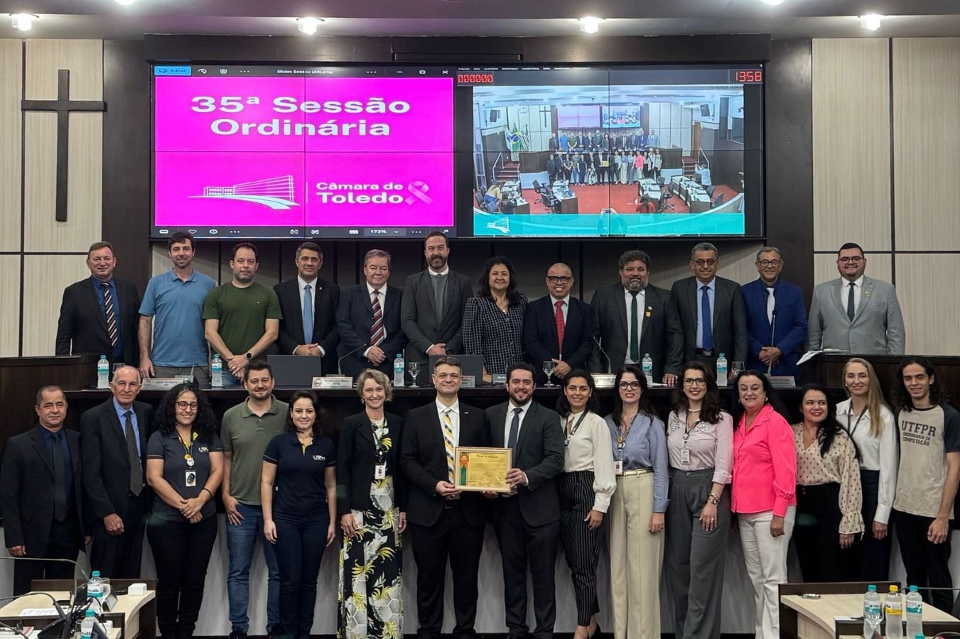 A Universidade Tecnológica Federal do Paraná (UTFPR) – Campus Toledo recebeu, nesta segunda-feira (13), uma Moção de Aplausos concedida pela Câmara Municipal de Toledo, em reconhecimento à sua contribuição para o desenvolvimento educacional, científico e tecnológico do Oeste do Paraná.