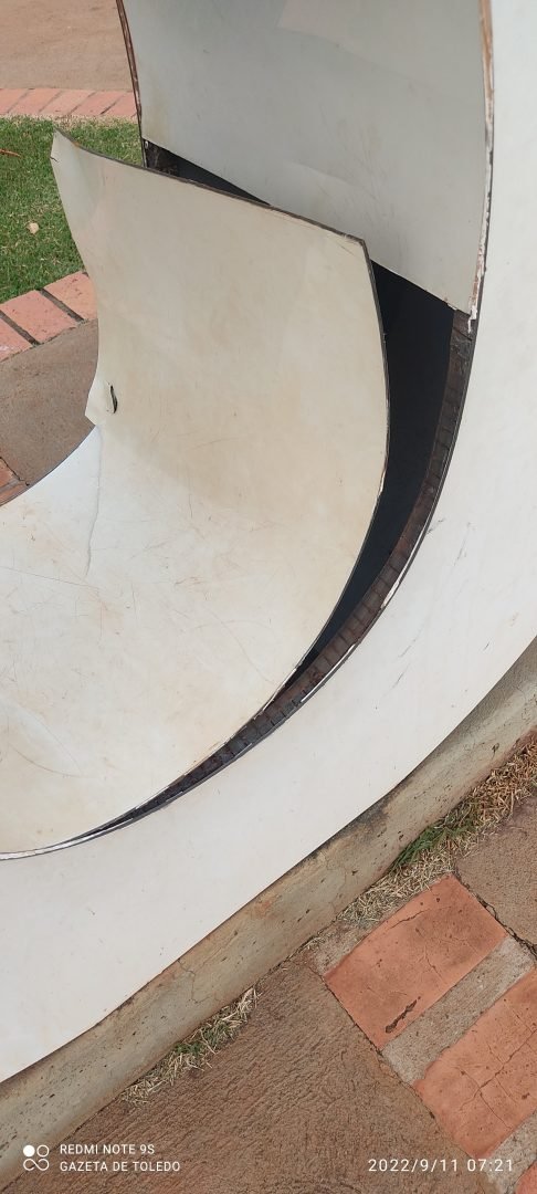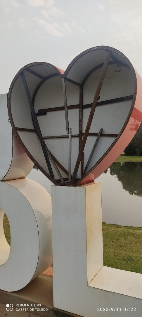 A chapa em ACM com o coração ❤️ de Toledo arrancada, várias outras letras da frase mais fotografada e que representa o sentimento pela cidade foram descoladas, quebradas e pisoteado. Creio que está mais que na hora de nossas autoridades instalarem as câmeras de vigilância.