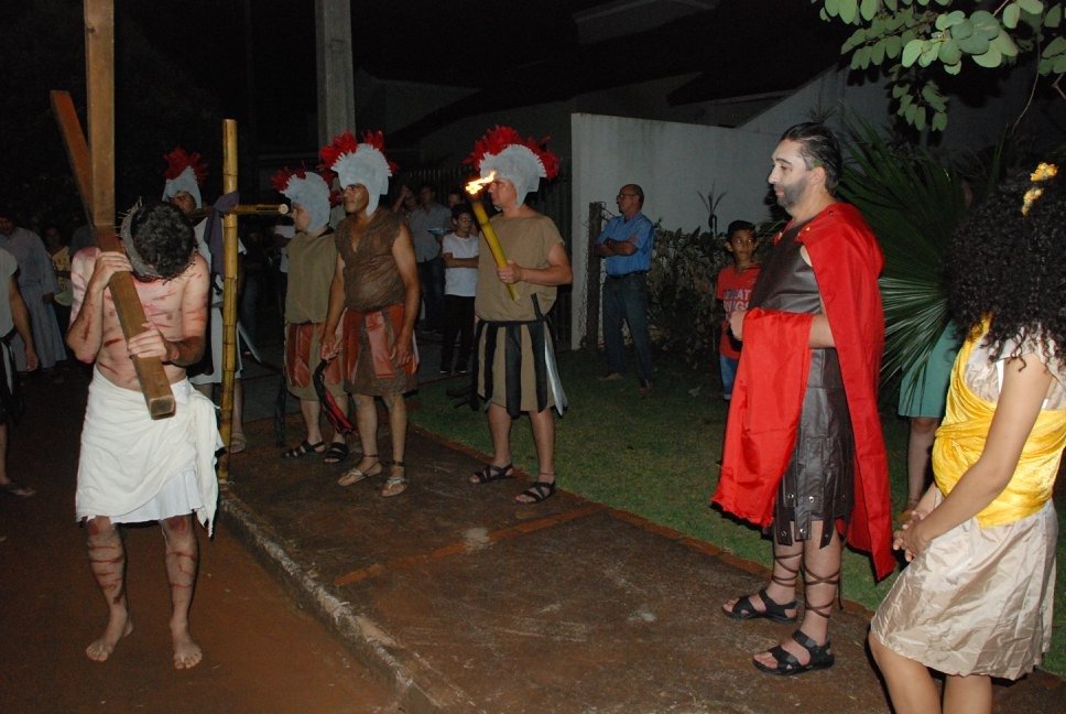 Via Sacra encenada relembra últimos momentos da vida de Jesus Cristo na Igreja Matriz São Francisco de Assis, no Jardim Coopagro